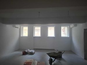 Към момента строителен екип работи активно. Очаква се ремонтът да приключи в срок, за да могат кабинетите да заработят с началото на новата учебна година.