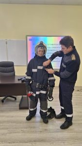 - Да облекат специализираната екипировка на огнеборците.