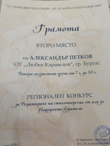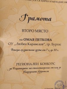 • Наша гордост! Александър Петков от 1.б клас и Омая Петкова от 2.Б клас с втори мяста от Регионален конкурс